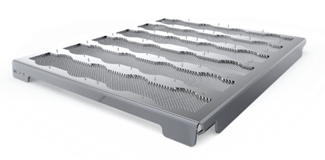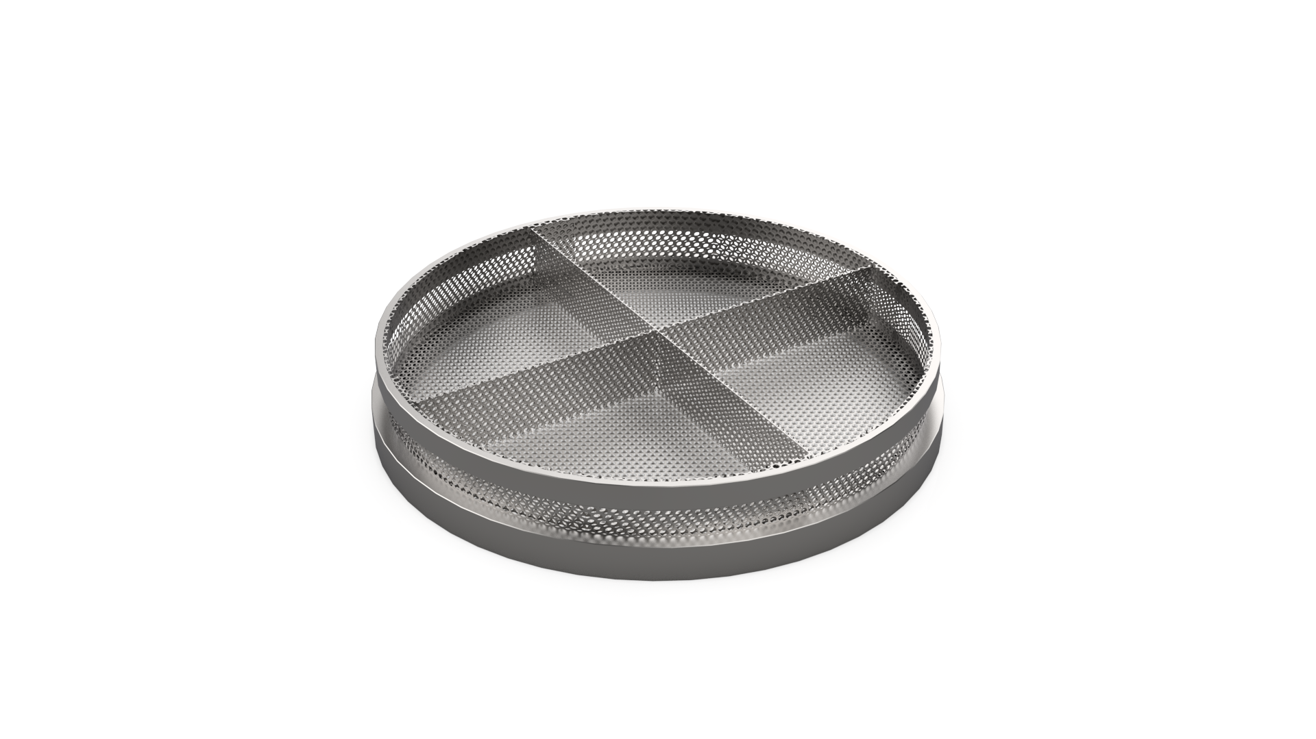 Grille spécifique en acier inoxydable 1.4031 EP. 3mm sans treillis, avec posages à Ø spécifique pour la protection des pieds des cadrans