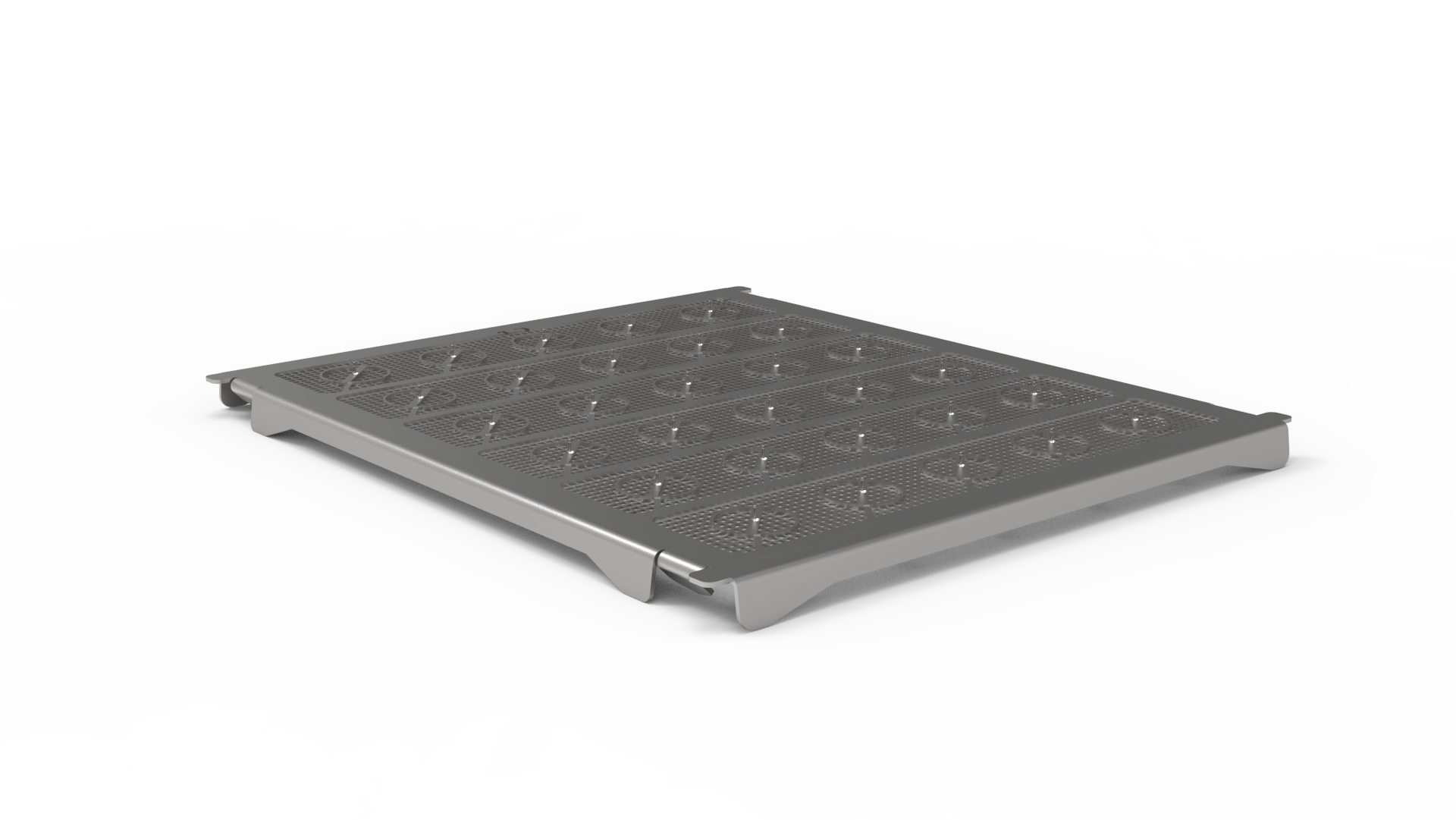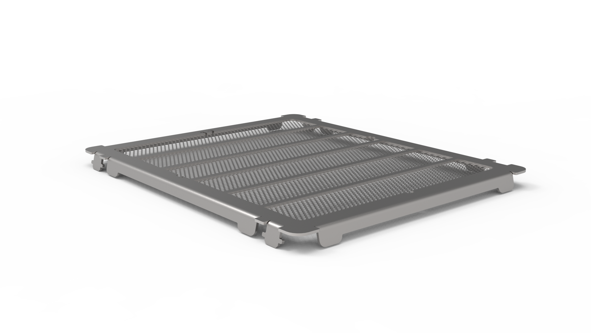 Grille spécifique en acier inoxydable 1.4031 EP. 1.5mm sans treillis, avec posages à Ø spécifique pour la protection des pieds des cadrans